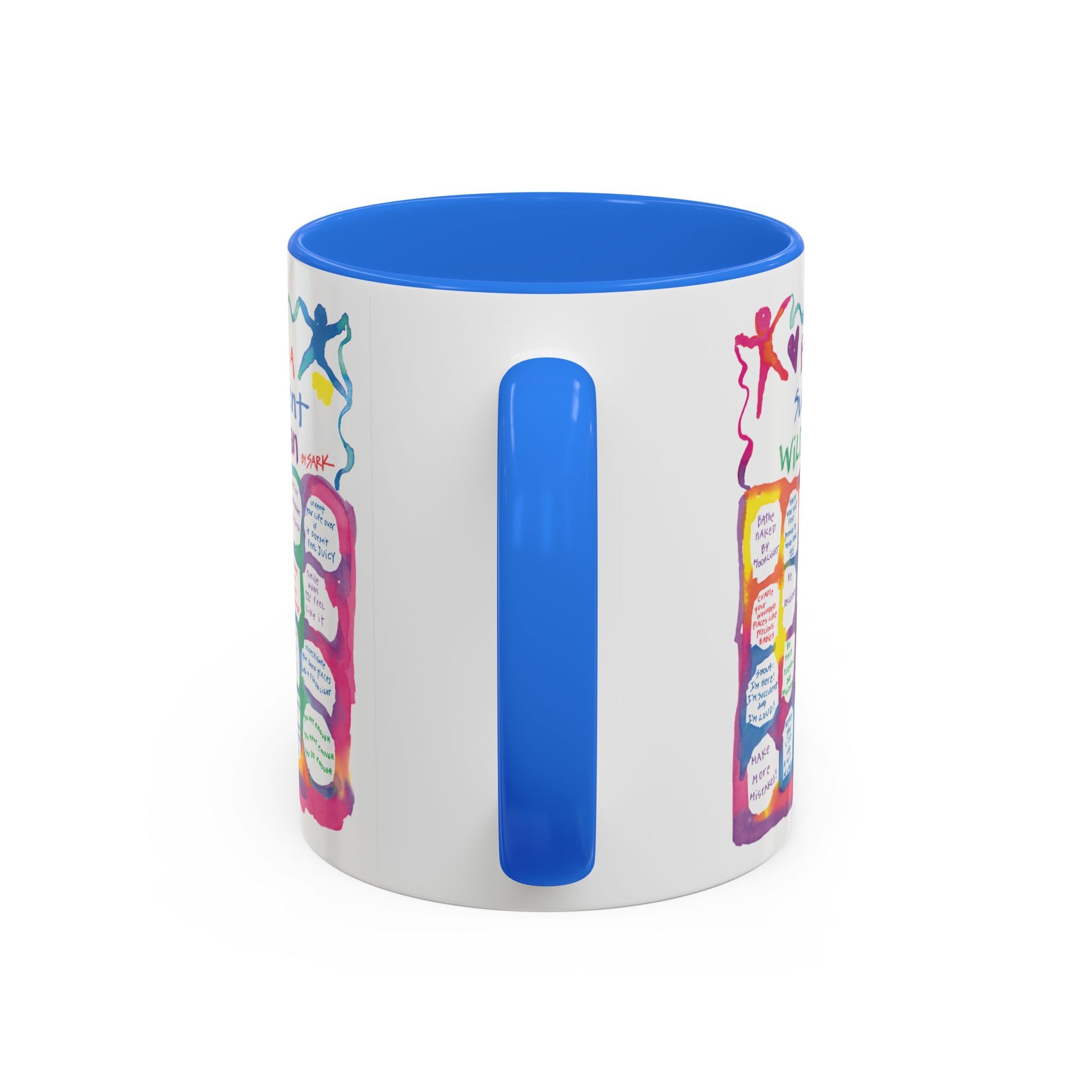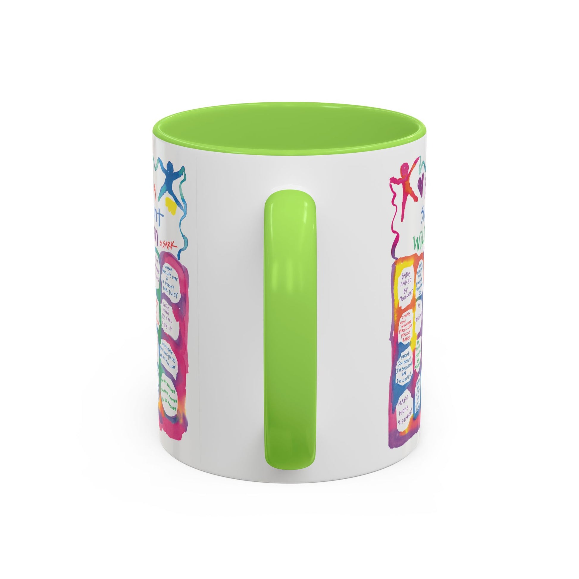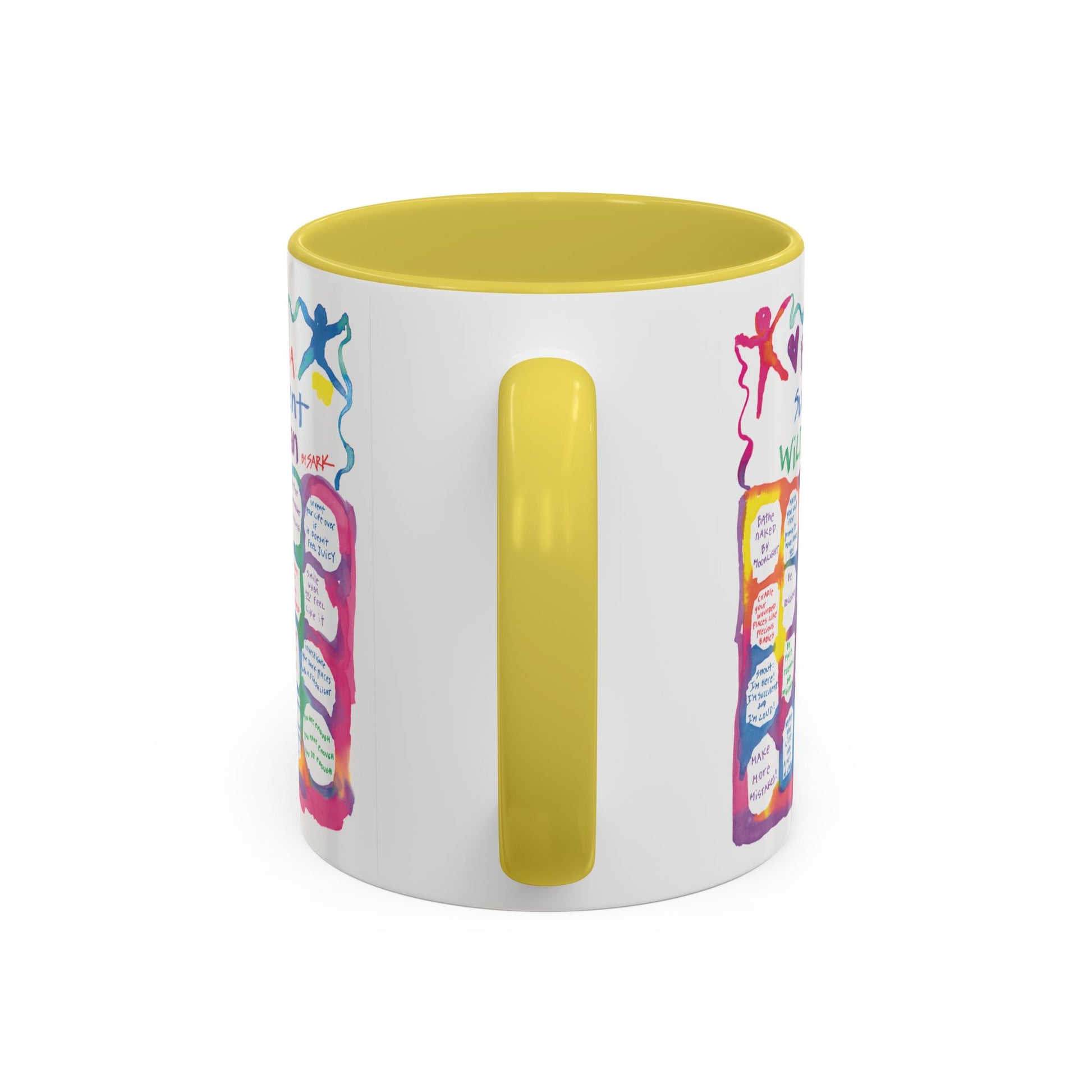 Experience SARK's brand new radiantly colorFULL 11oz ceramic mugs, featuring a bright painted interior and handle available in 12 delightful colorways! Choose the design that speaks to your heart and pair it with the color that sparks the most joy. Perfect for coffee, tea, any cozy moment, this mug is a canvas for your creativity.