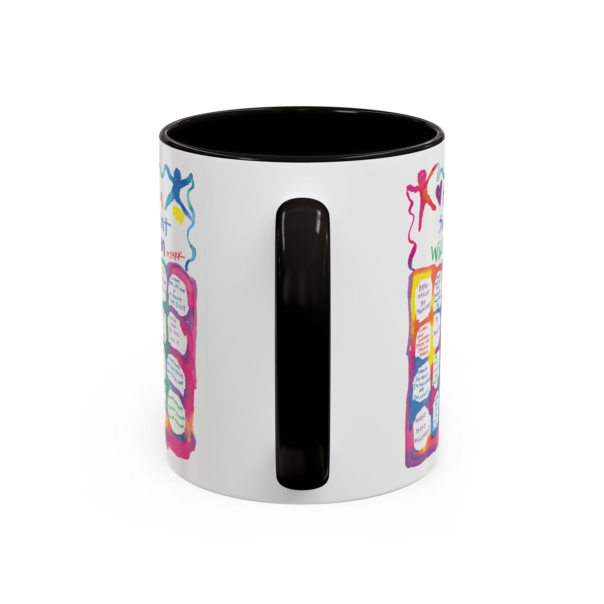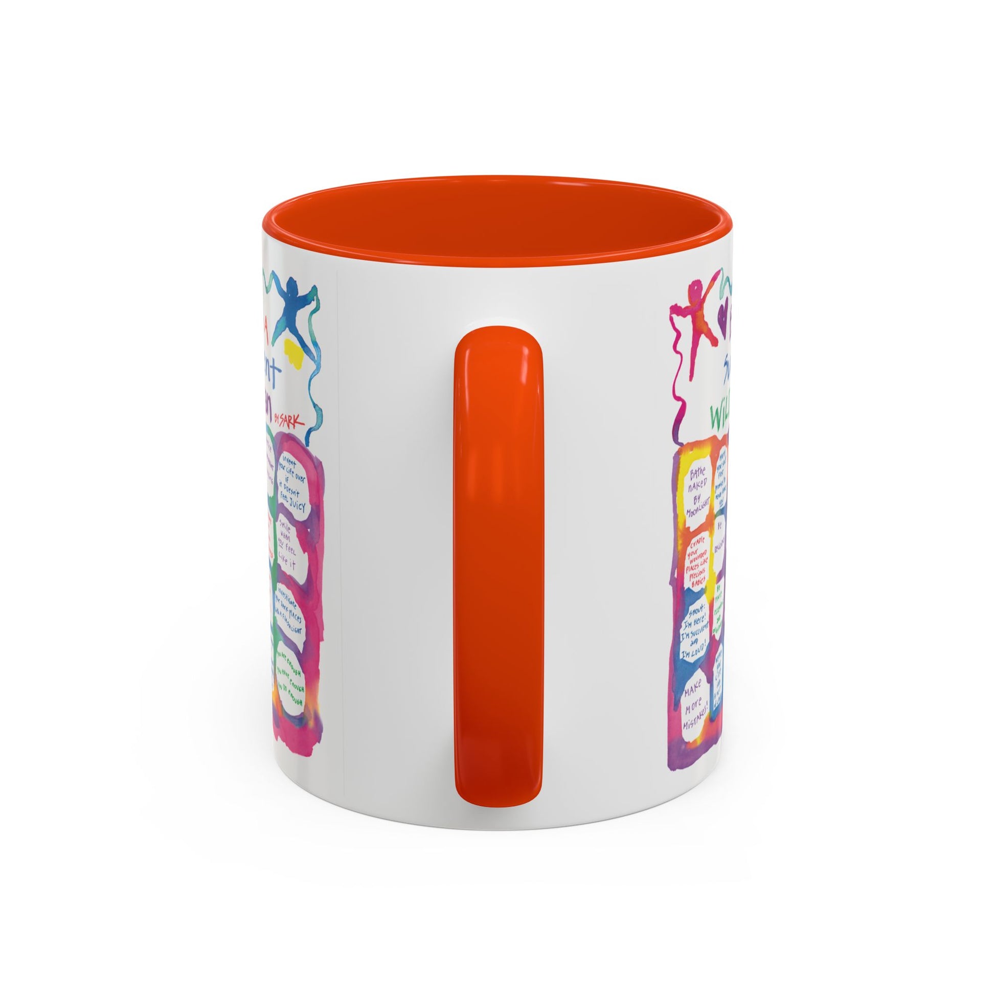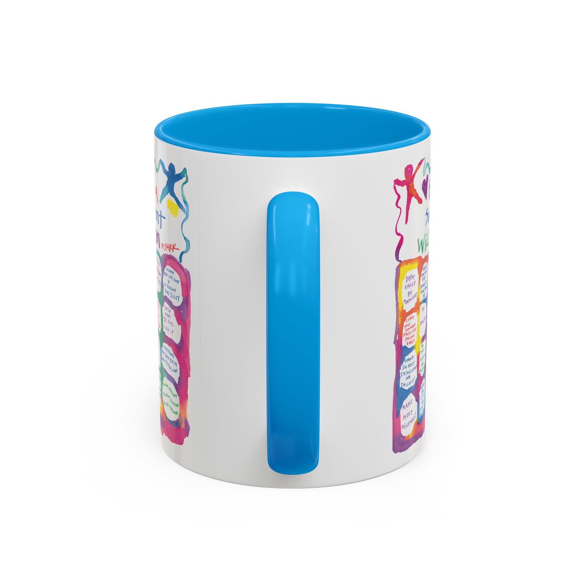 Experience SARK's brand new radiantly colorFULL 11oz ceramic mugs, featuring a bright painted interior and handle available in 12 delightful colorways! Choose the design that speaks to your heart and pair it with the color that sparks the most joy. Perfect for coffee, tea, any cozy moment, this mug is a canvas for your creativity.